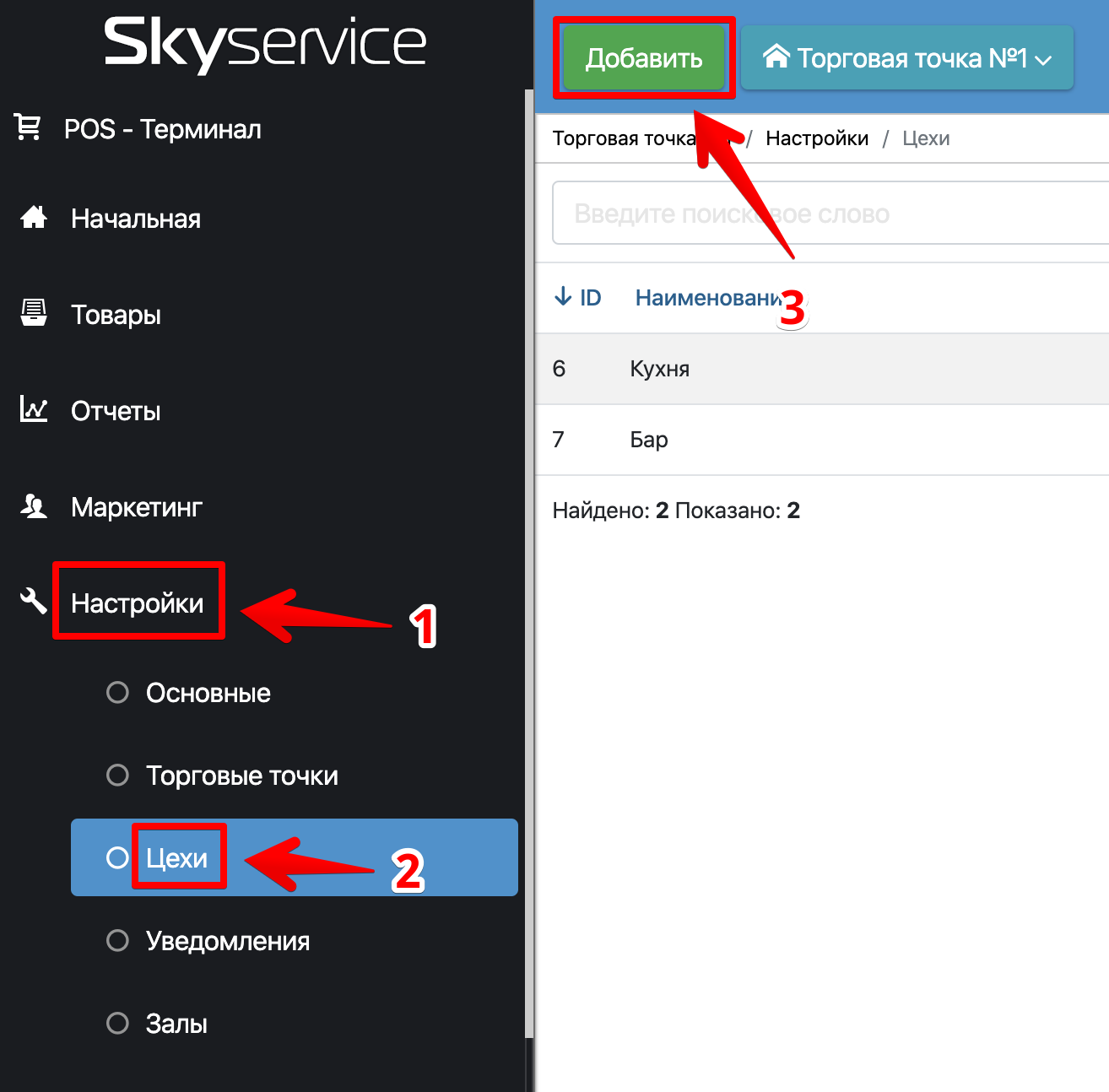 ☝ Пасля падзелу тавараў на майстэрні можна адправіць бегуноў на кухню, для гэтага трэба перайсці ў налады гандлёвай кропкі, уключыць прыгатаванне ежы, дадаць патрэбную майстэрню да тавараў, тэхнічных картак і падключыць прынтэр для бегуноў – можна чытаць больш падрабязна на ўроку “Як наладзіць друкаваныя машыны”