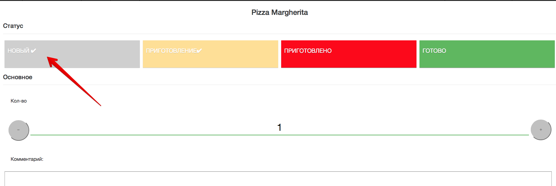 - Калі чэк мае статус Падрыхтоўка ежы