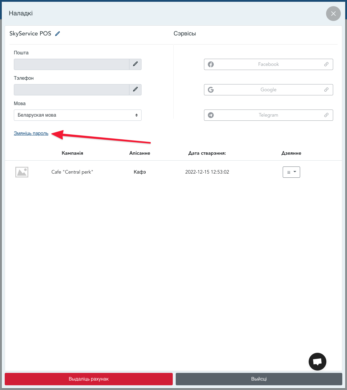 - У акне «Настройкі» націсніце « Змяніць пароль »