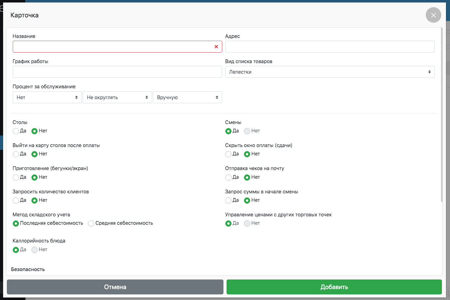 - Тэхналагічная карта – калі склад стравы змяніўся, выдаляе папярэдні склад і замяняе яго новым, цана не мяняецца