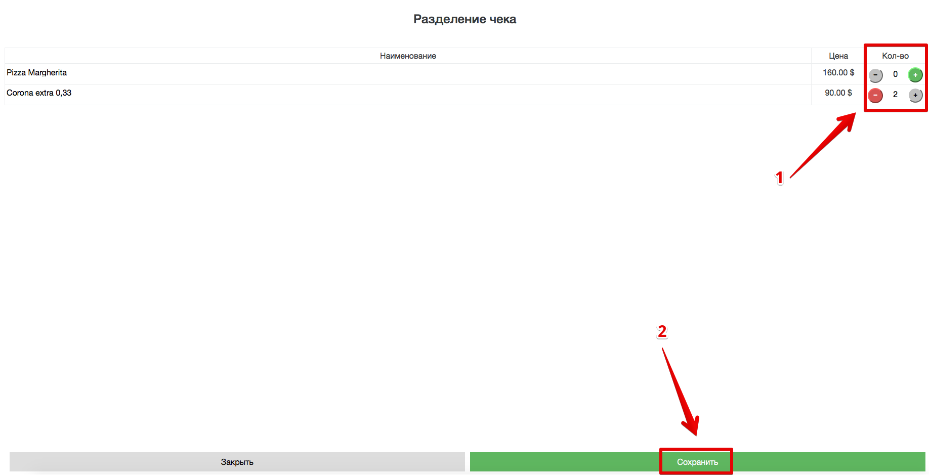 Падзел чэка – гэта запатрабаваная функцыя, калі для буйных кампаній гэта дазваляе разлічваць кліентаў асобна і рознымі спосабамі аплаты