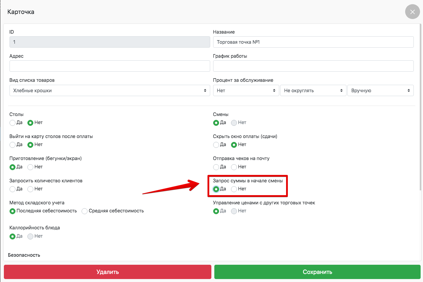 На панэлі адміністратара перайдзіце ў раздзел Налады – Пункты продажаў і абярыце патрэбную кропку