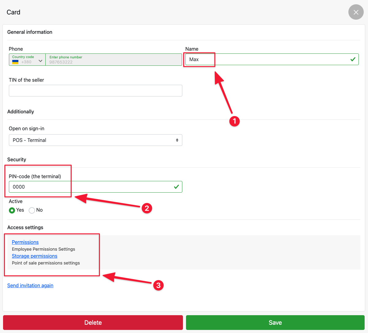 How to add an employee (access rights, access to warehouses)