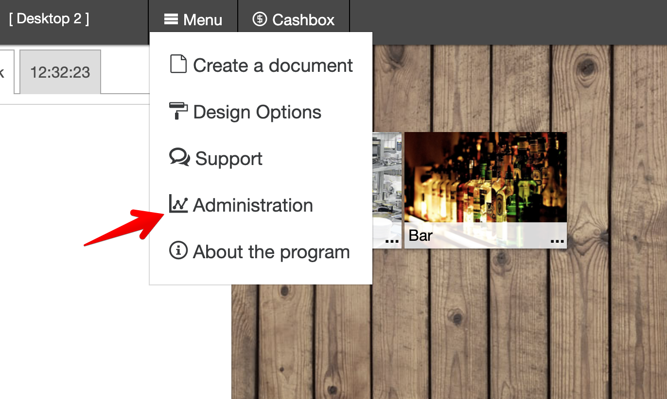 Avage menüü / haldus (ekraani vasakus ülanurgas):