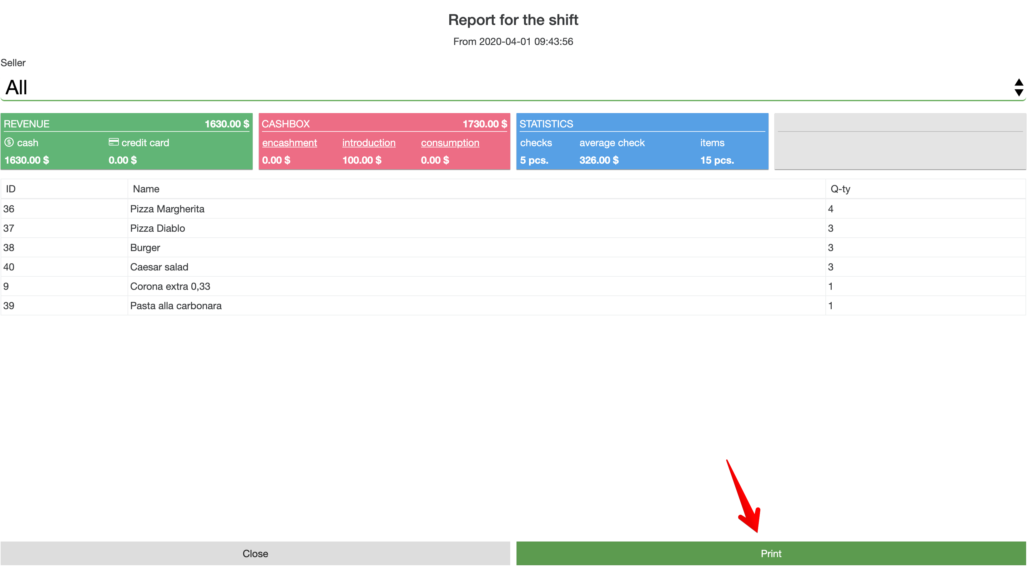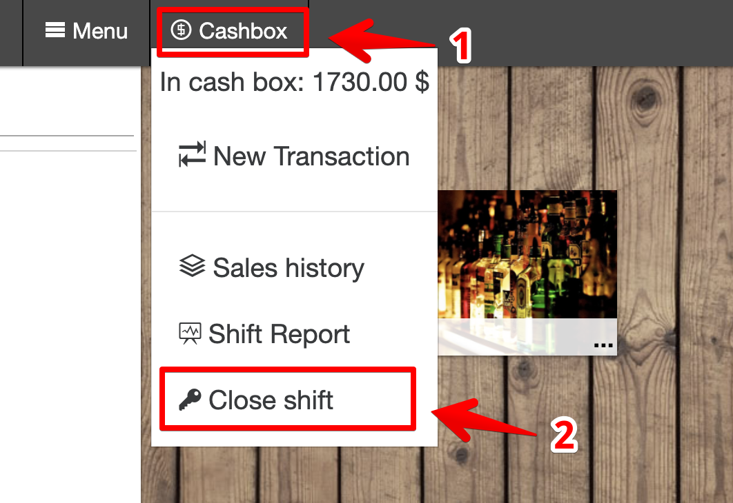 - Aastal makseterminalide, klõpsake Kassa – Sulge nihe