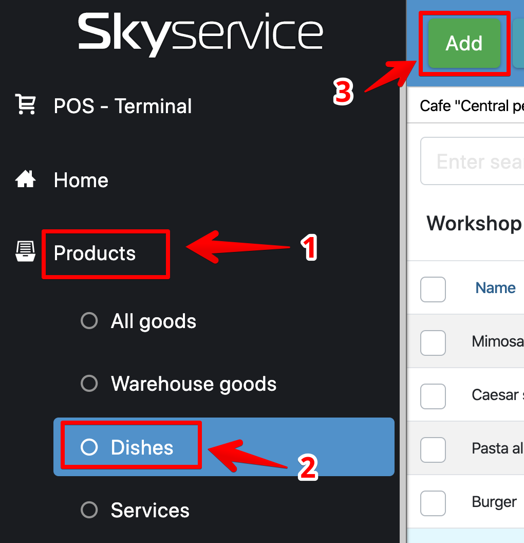 - Vuonna Admin paneeli, mene osioon Tuotteet → Astiat