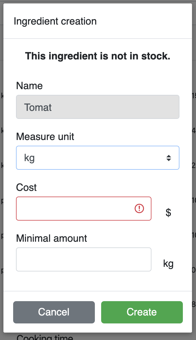 - Jos ainesosa on jo lisätty varastossa, etsi tai lisää se vain kirjoittamalla nimen ensimmäiset kirjaimet tai: