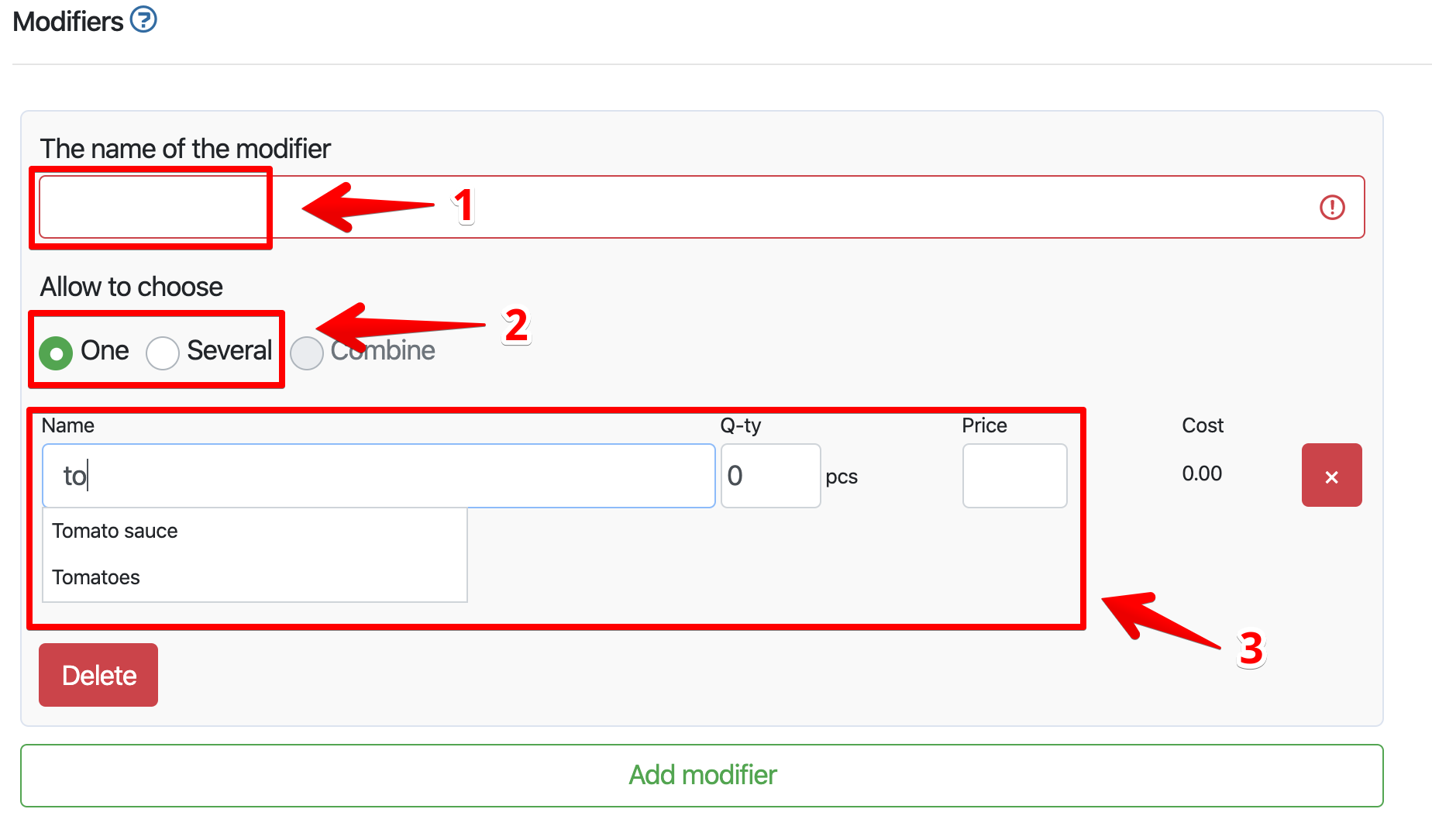 - Ikkunan alaosassa ovat ne. korteissa on Modifiers- lohko, napsauta Lisää modifikaattori