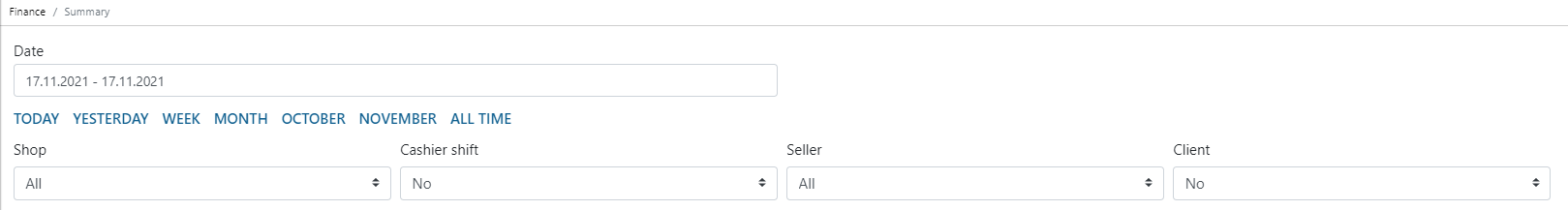 Sivun yläosassa voit valita tarvitsemasi raportointisuodattimet: