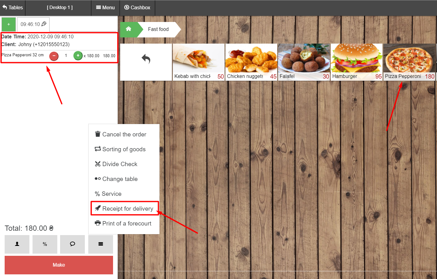 ל- SkyService של מסוף ה- Pos יש יכולת ליצור קבלה למשלוח. אם ללקוח יש סוג של פעילות שקשורה למשלוח, ויש צורך שעובד מחלקת המשלוחים יוציא צ’ק, שיציין את הנתונים הבאים: מספר טלפון, כתובת, שם מלא, תאריך ושעת מסירה.