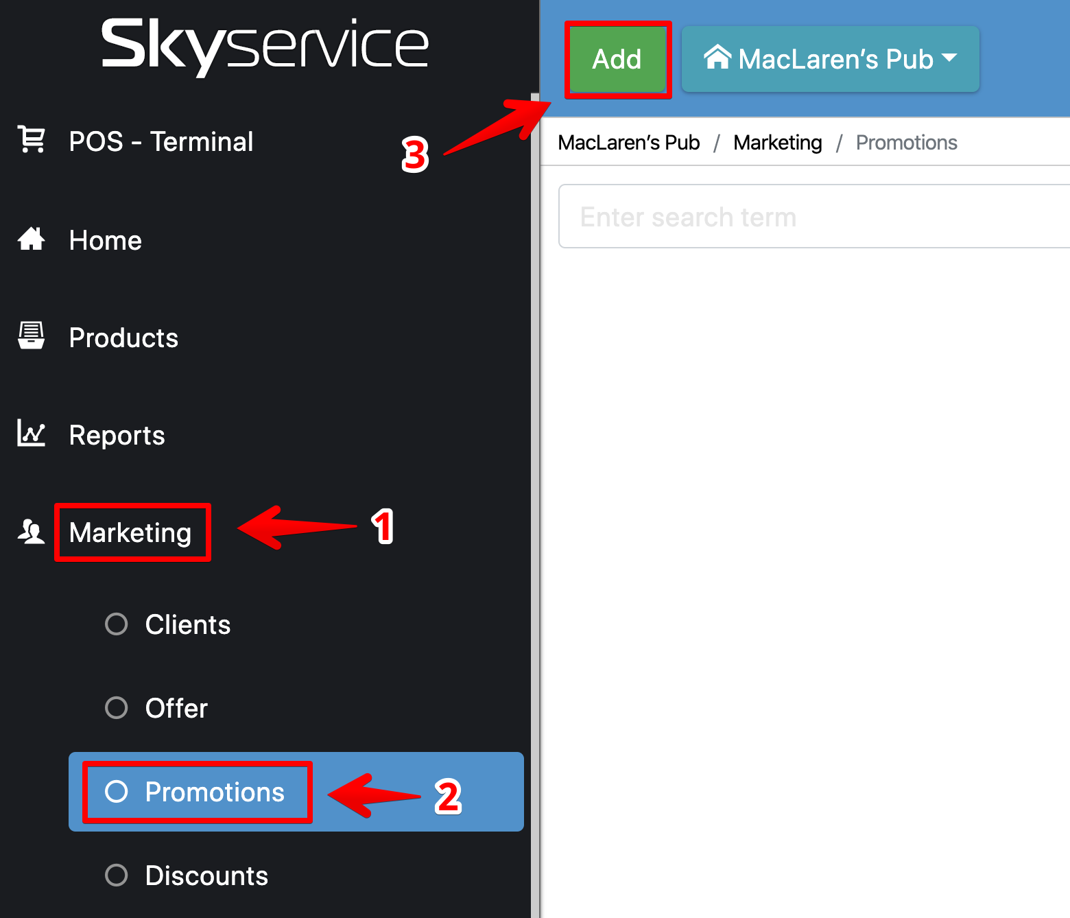 Nel pannello di amministrazione, vai alla sezione Marketing – Promozioni, fai clic su Aggiungi