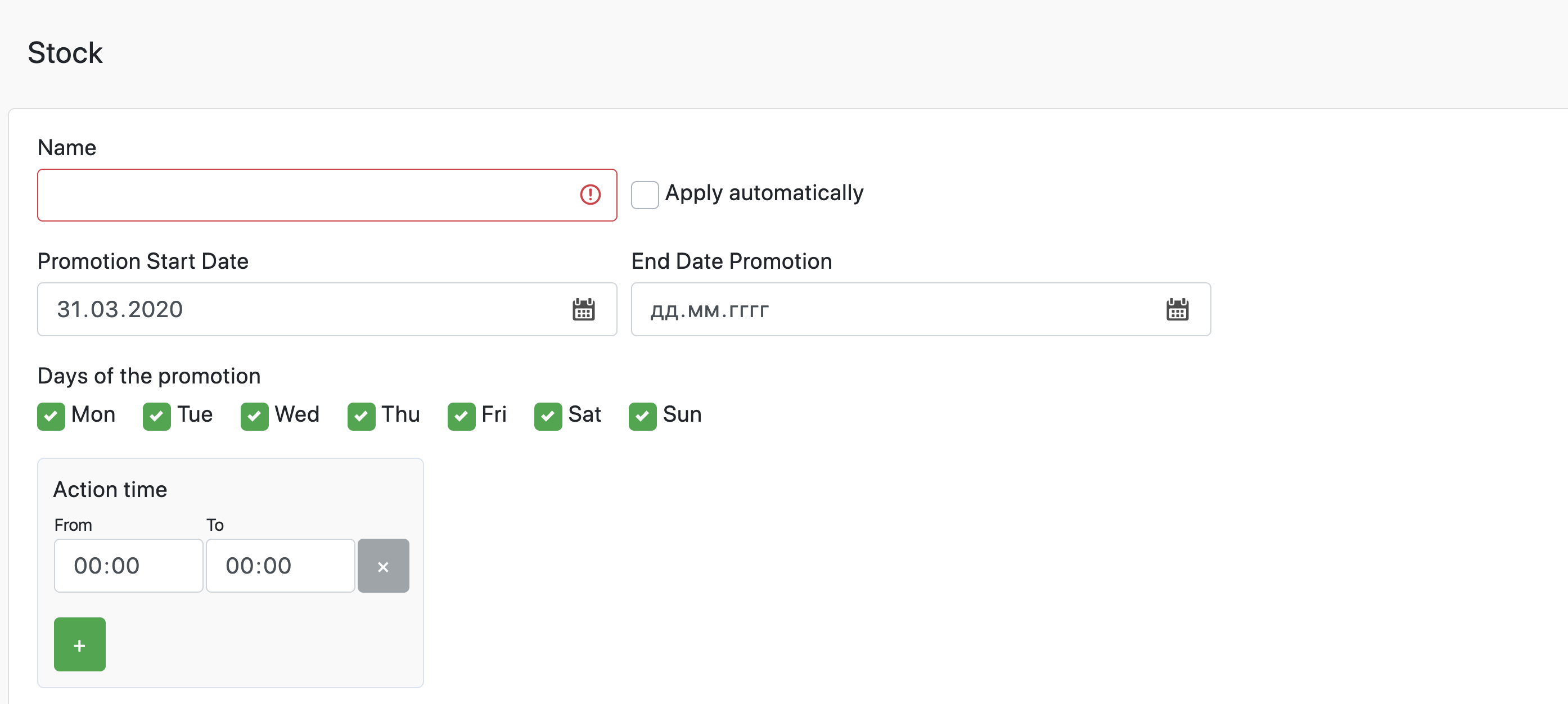 - Scegli la data di inizio dell’azione, la data di fine dell’azione