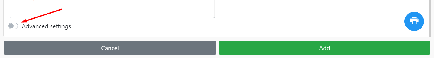 - Norėdami pamatyti langelį „spausdinimo parametrai, matmenys“, spustelėkite jungiklį priešais lauką „Išplėstiniai nustatymai“