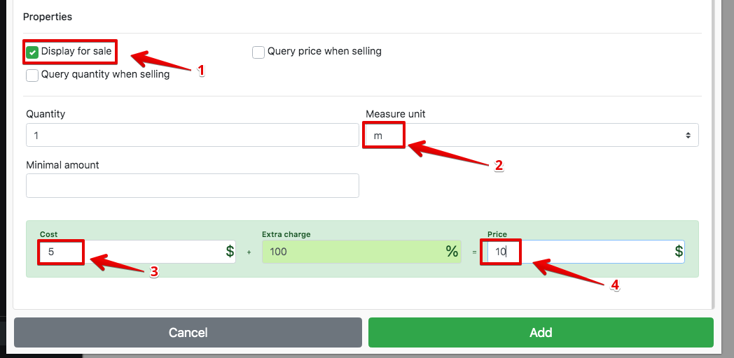 - Izvēlieties vienību (piem., gab, kg, g)