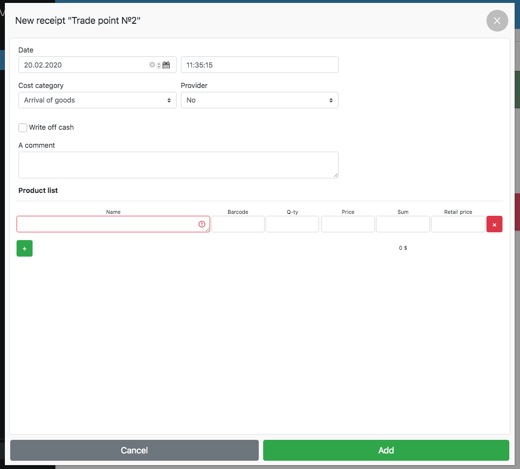 Ga naar de uitgebreide beschrijving van het proces van het toevoegen van goederen (dienstverlening)