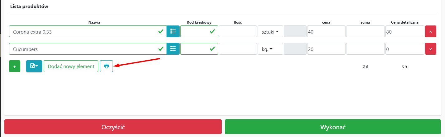 • Aby wyszukać / dodać produkt, wystarczy wpisać pierwsze litery nazwy