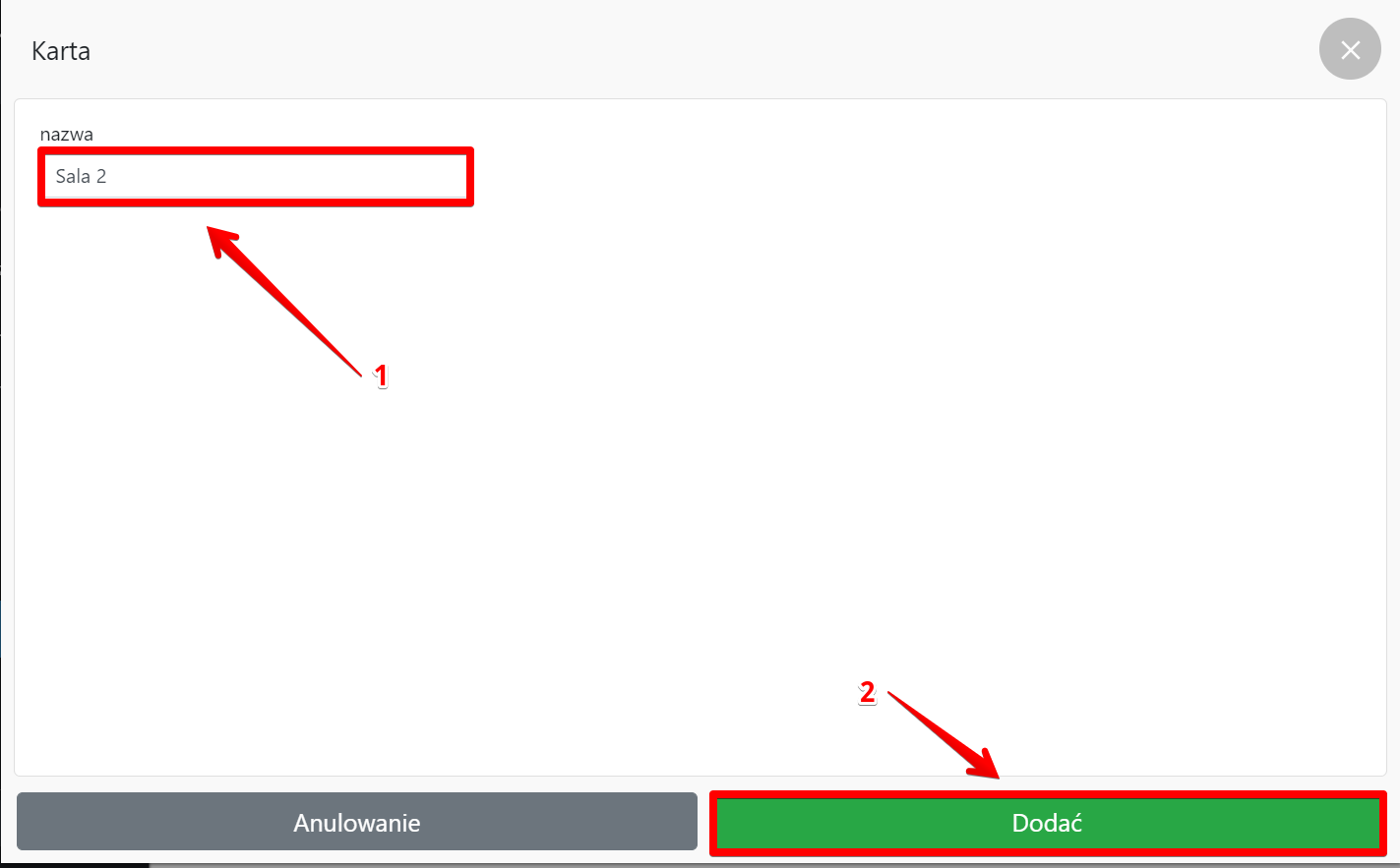 Dodawanie sal Możesz dodać lokalizację sal w panelu administracyjnym : Przejdź do karty Ustawienia → Sala i kliknij Dodać Wprowadź nazwę i kliknij Dodać Czytaj więcej: Powiązane lekcje Jak zmienić jęzuk i walutę w SkyService Ustawienie czasu Multiterminal Okres kredytowy Jak założyć konto Popularne lekcje Konfigurowanie Wi-Fi drukarki Xprinter Jak tworzyć X i Z raporty. Konfigurowanie Wi -Fi drukarki Pos Sector Jak skonfigurować drukarkę paragonową w systemie Windows FAQ | Pytania i odpowiedzi