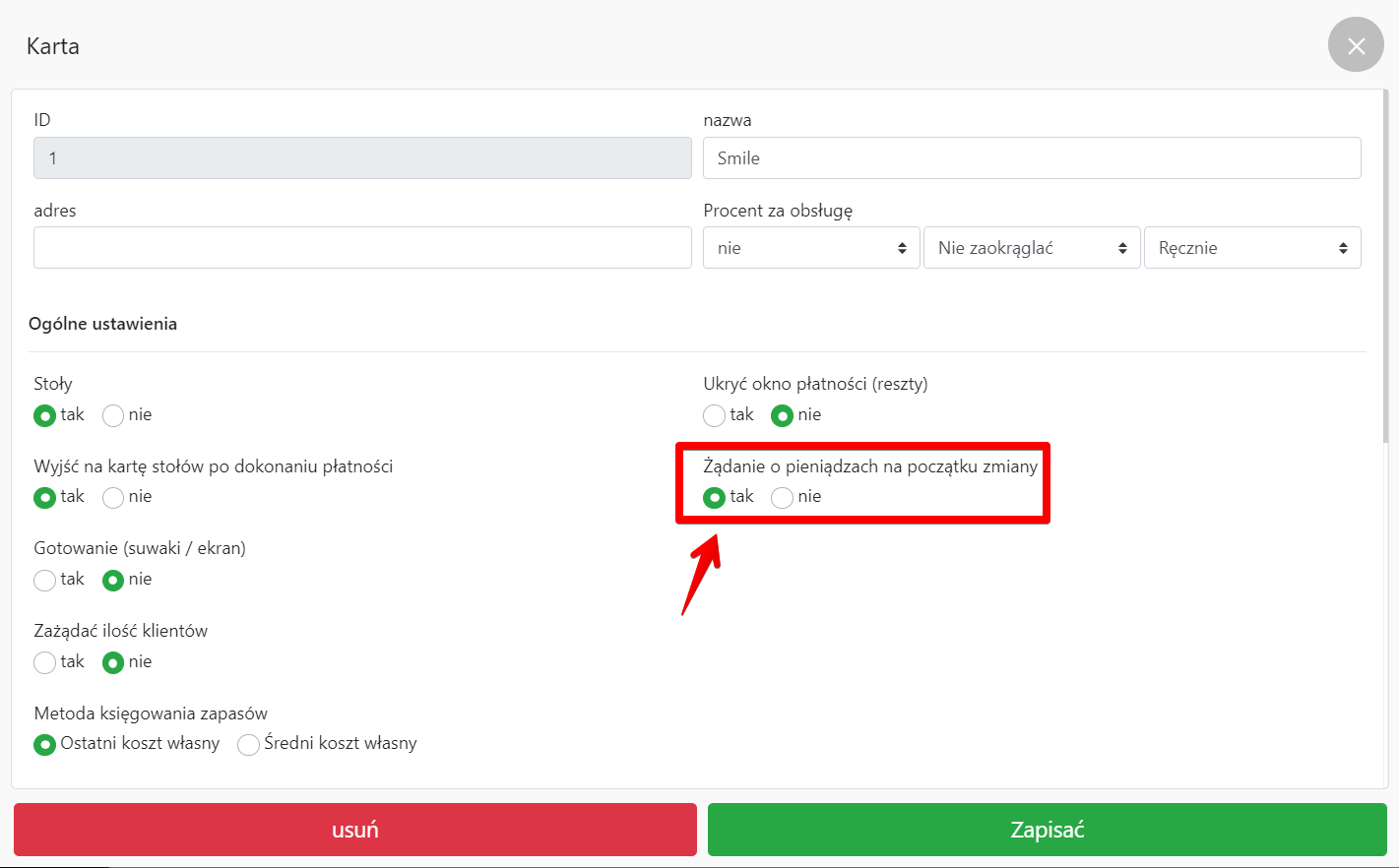 Jeśli zawsze pobierasz całą kwotę z kasy, włącz automatyczne inkasowanie.