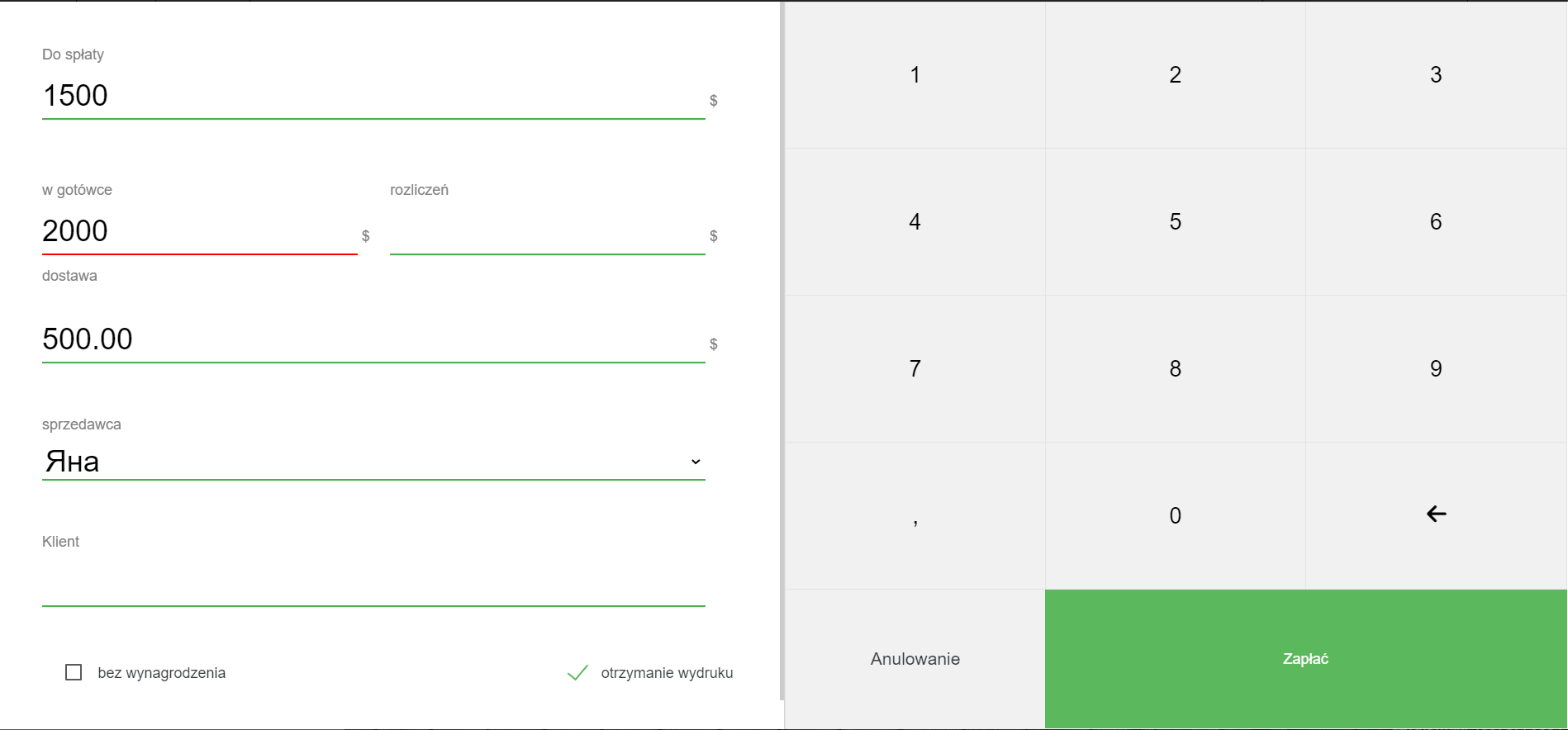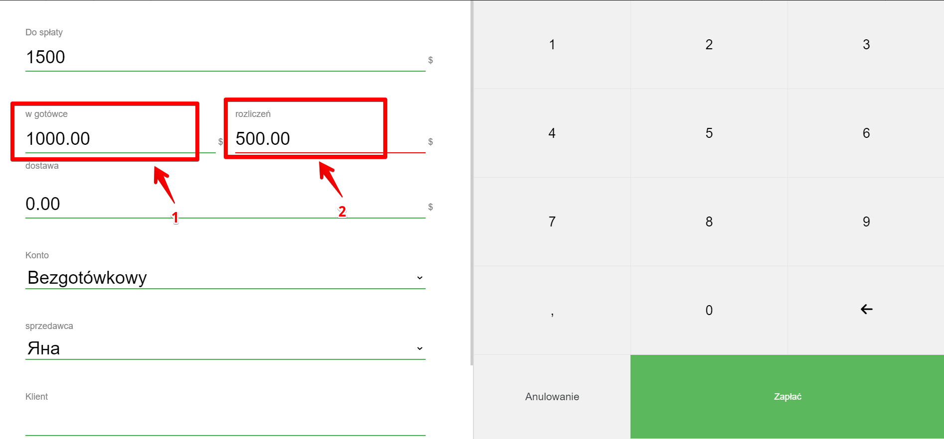 - Użyj klawiatury numerycznej i wprowadź gotówkę