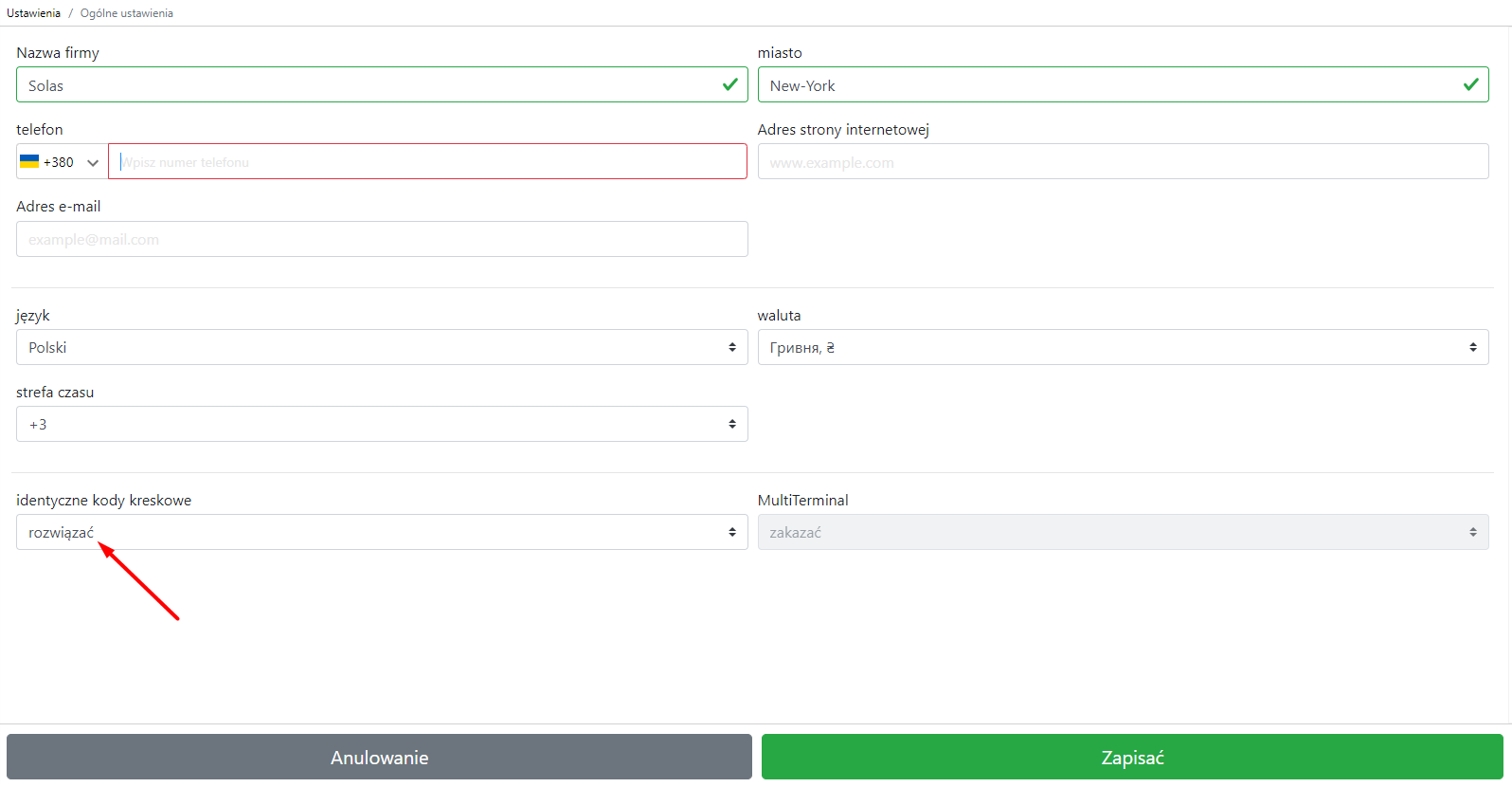 - W polu „Identyczne kody kreskowe” – wybierz Rozwiązać/ Zakazać