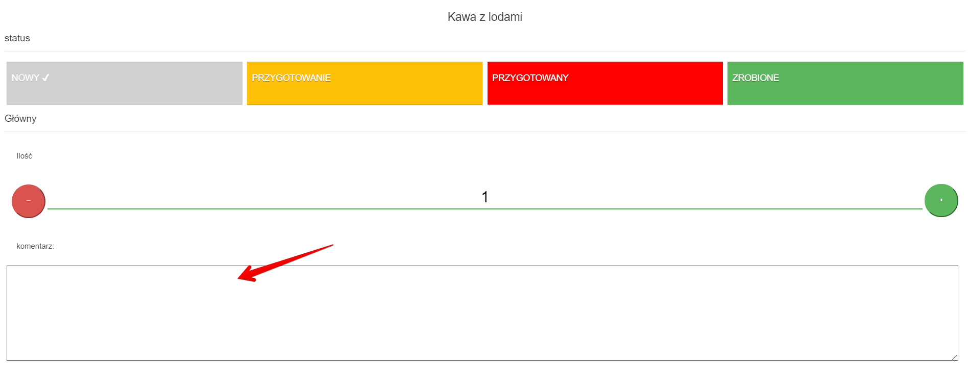 - Wpisz komentarz do zamówienia