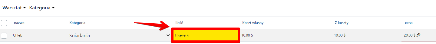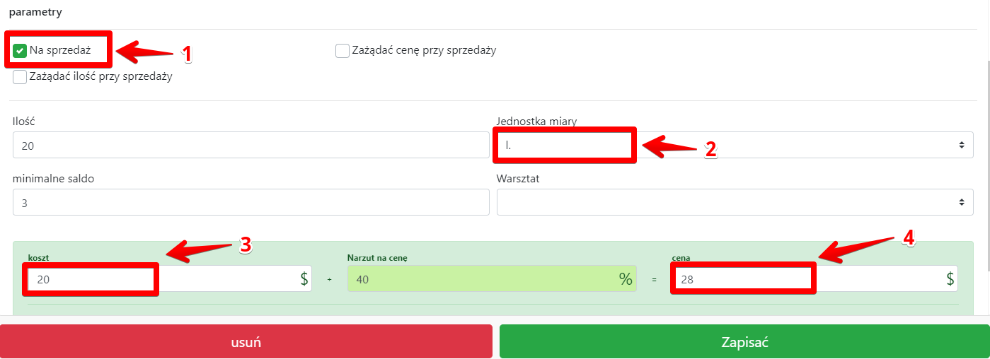 - Wybierz jednostkę wymiaru (np. Szt., Kg, g)