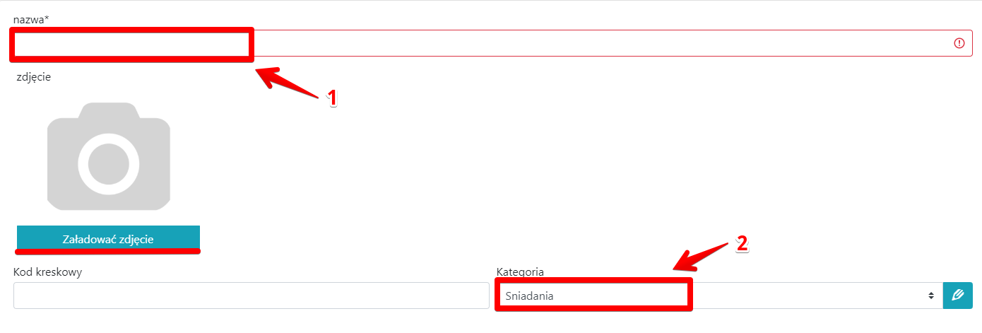 - Wpisz nazwę produktu, wybierz kategorię i warsztat