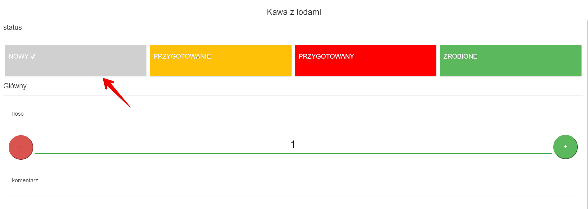 - Po dodaniu elementu do paragonu możesz użyć przycisków, aby zmienić ilość elementu