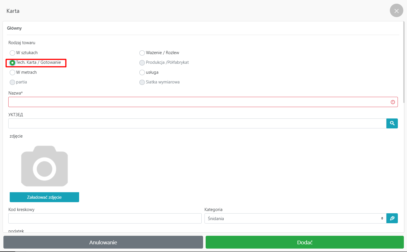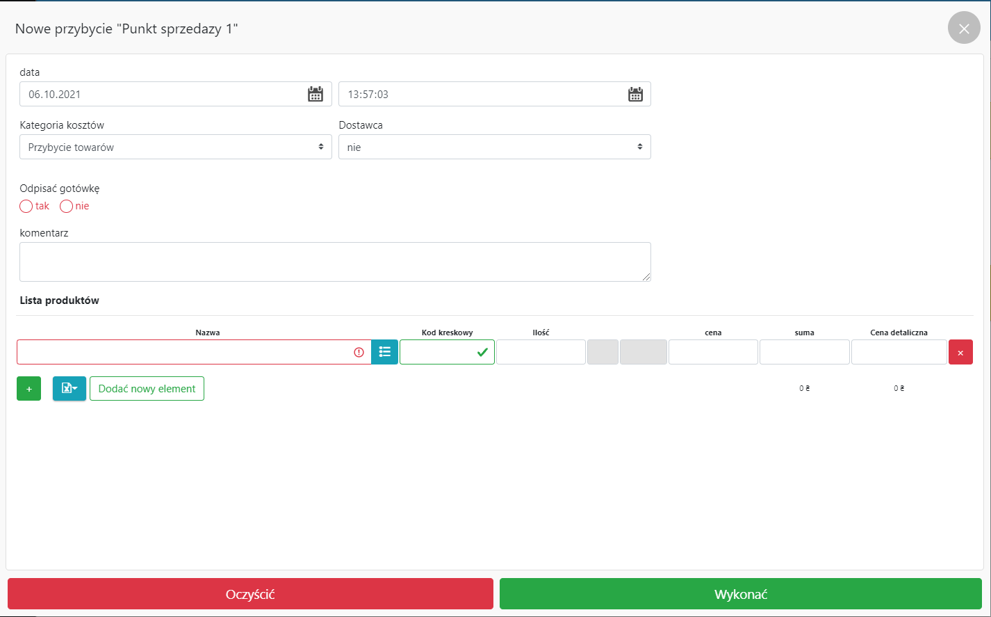 Dodawanie produktów (w razie potrzeby)
