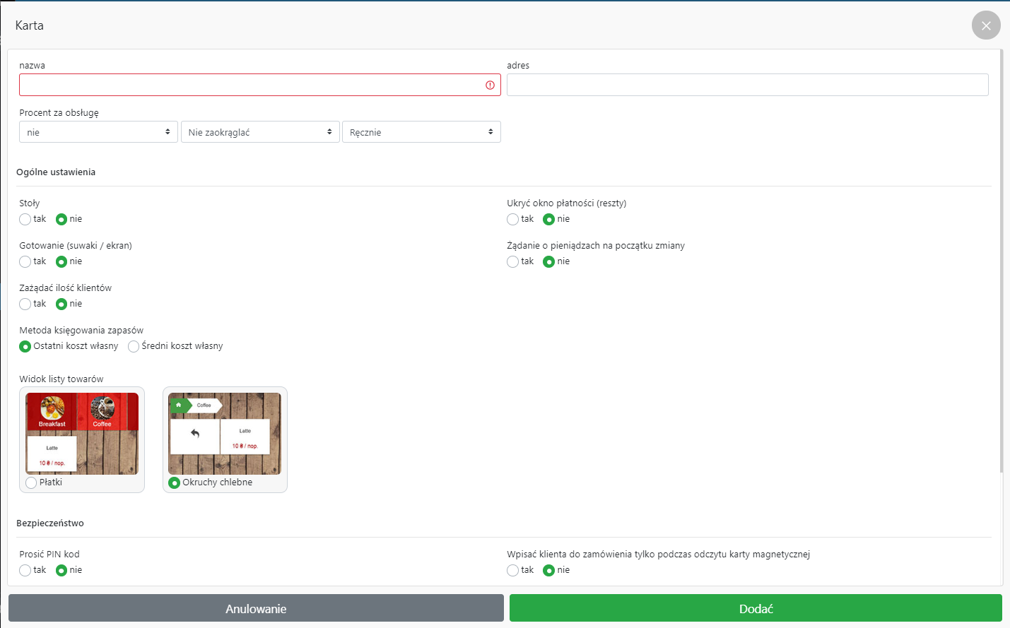 - W oknie, które zostanie otwarte, wprowadź nazwę punktu i zapisz informację w inne pola, wybierz również wymaganą funkcjonalność za pomocą znaczników wyboru i kliknij Dodać