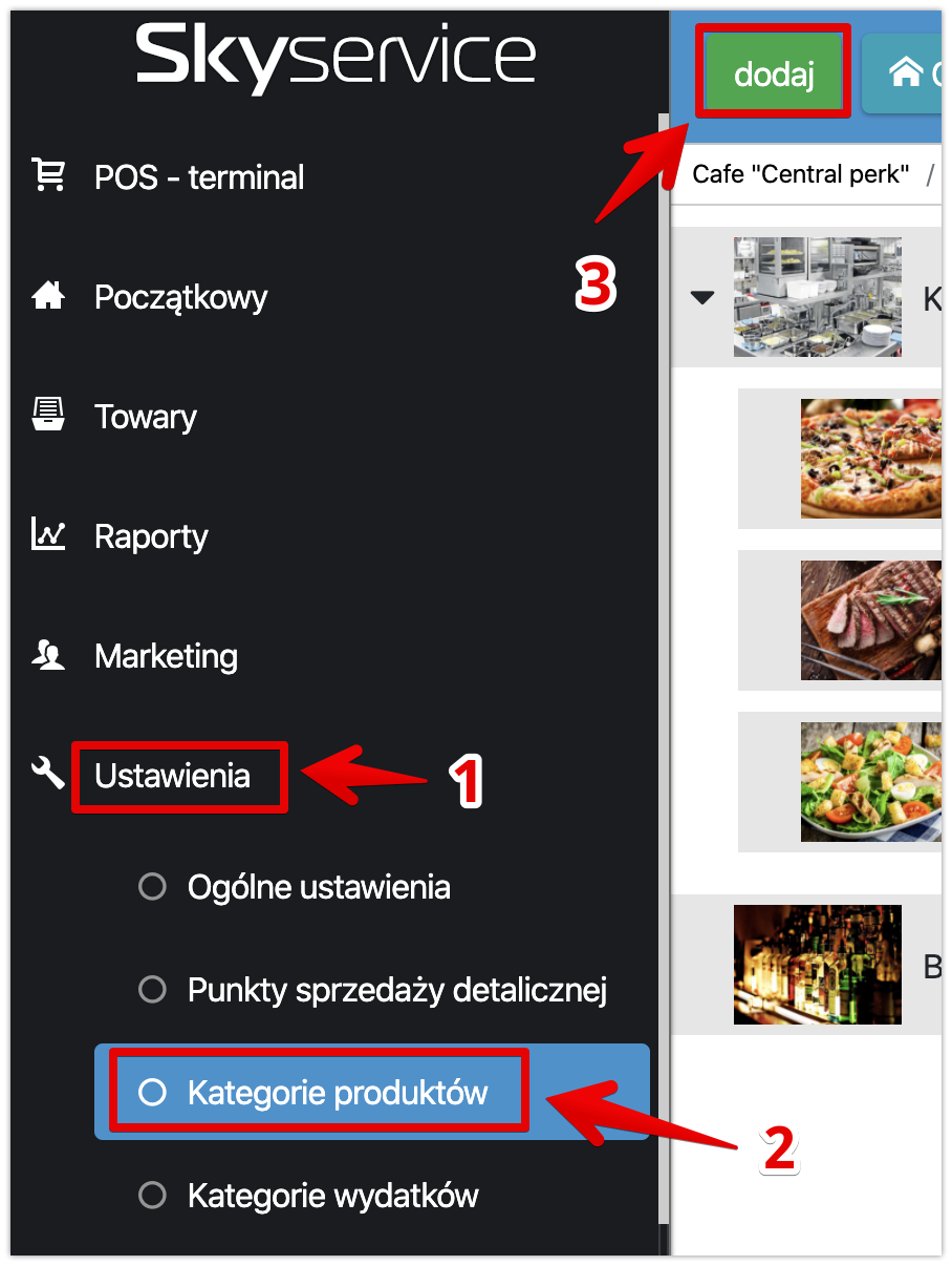 Utwórz menu, zapełnij POS-terminal kategoriami, towarami i tech. kartami