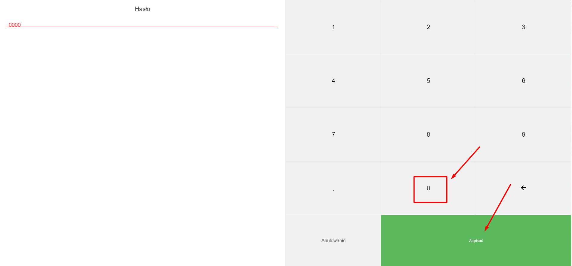 - Jeśli pracownik zdecyduje się anulować paragon po jego wpisaniu, będzie musiał wprowadzić master password, który określiłeś w ustawieniach punktu sprzedaży.
