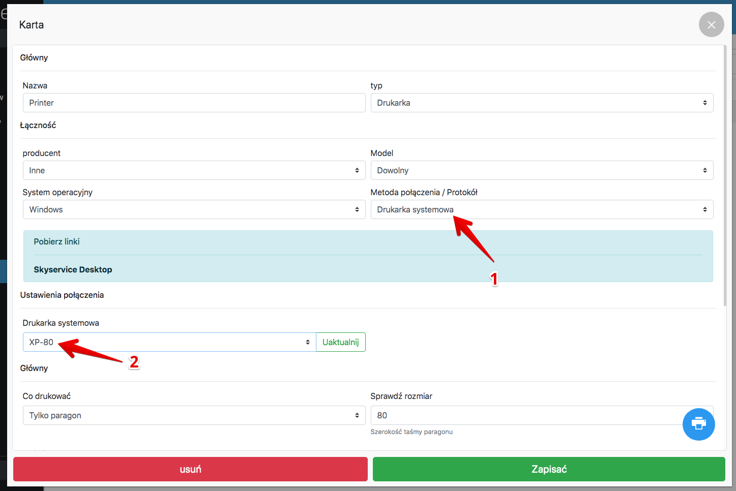 - W polu Drukarka systemowa – wybierz sterownik drukarki, który zainstalowałeś na początku lekcji