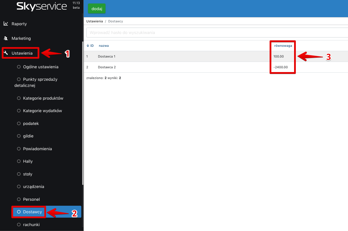 - W kolumnie Saldo pokazuje dług według dostawcy