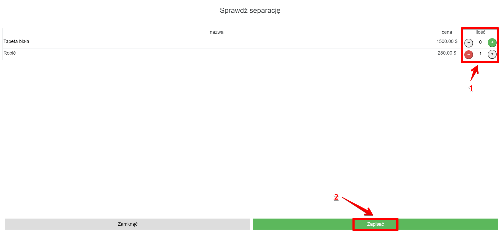 - W wyskakującym oknie wybierz towary, które zostaną przeniesione do innego paragonu