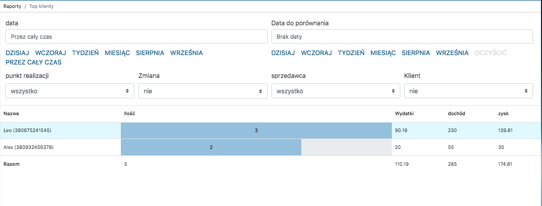 - W panelu administracyjnym przejdź do sekcji Statystyka – Top klienty