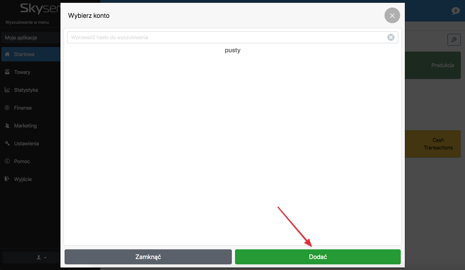 Po kliknięciu „Wybierz konto” otworzy się okno, w którym możesz dodać nowe konto, klikając przycisk „Dodać”