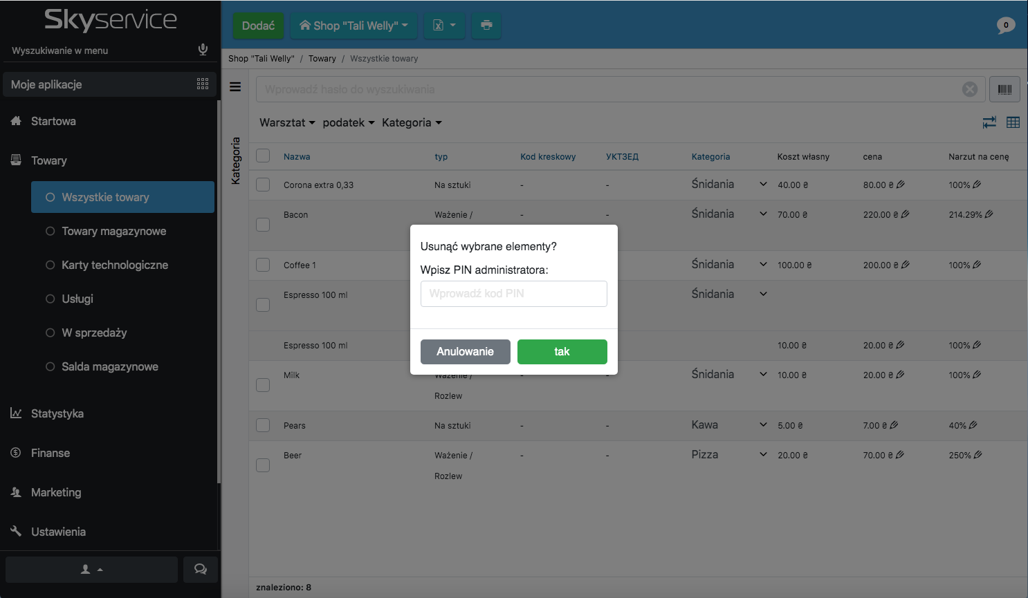 Ze względów bezpieczeństwa pojawiła się funkcja „PIN administratora”. Ma on na celu zapobieganie przypadkowemu wywiezieniu towarów i chroni dane przed nadużyciem obowiązków służbowych przez Twoich pracowników.