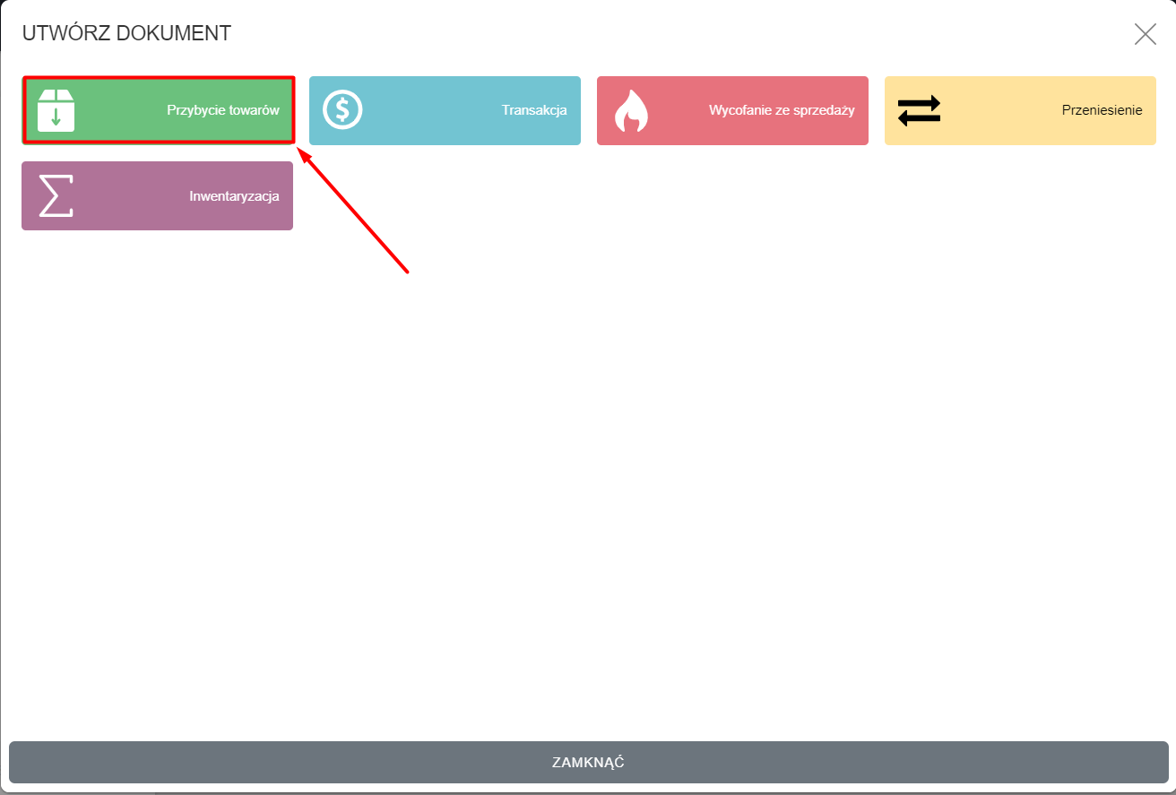 Przejdź do menu / administracji i kliknij Nowy dokument (w lewym górnym rogu ekranu):