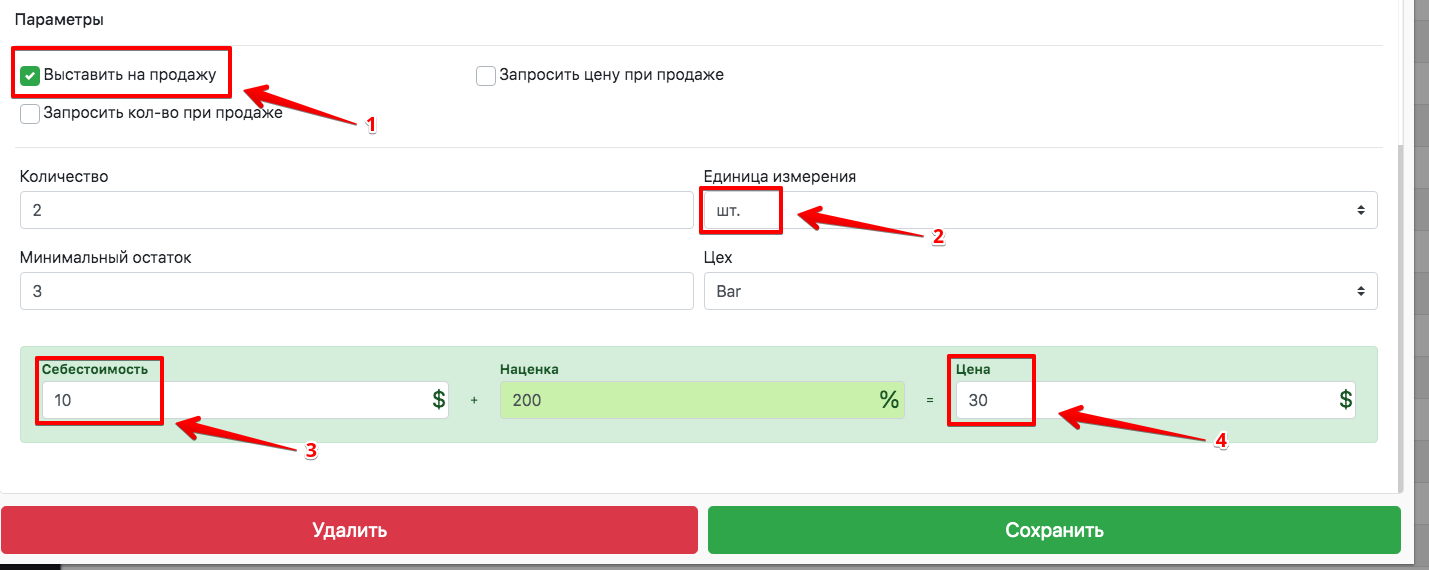 Введите Минимальный остаток – напоминания о закупке (при достижении минимального количества остатка), количество товара будет выделяться желтым