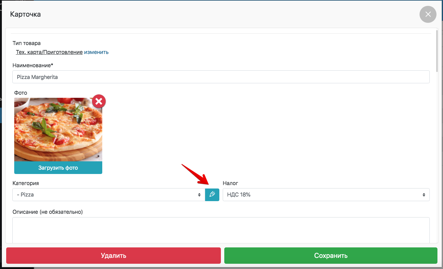 - Для загрузки иконки категории нажмите на картинку фотоаппарата
