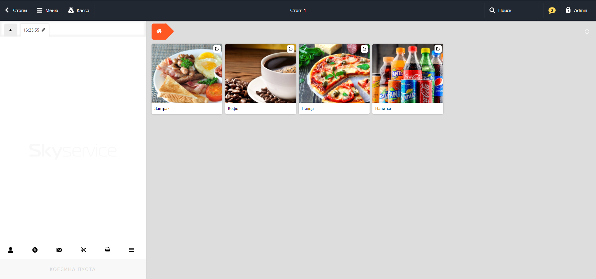Добавление категорий и подкатегорий продукции, которые будут отображаться на рабочем экране POS терминала.