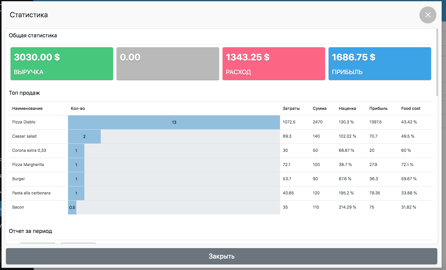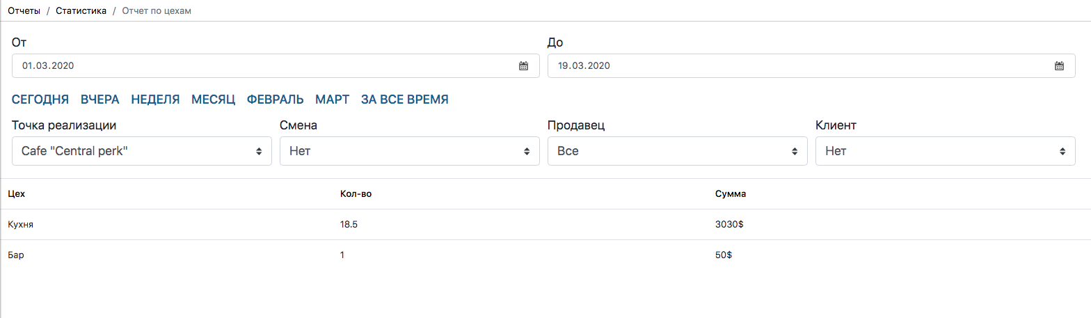 - В Админ-панели перейдите в раздел Статистика – Отчет по цехам