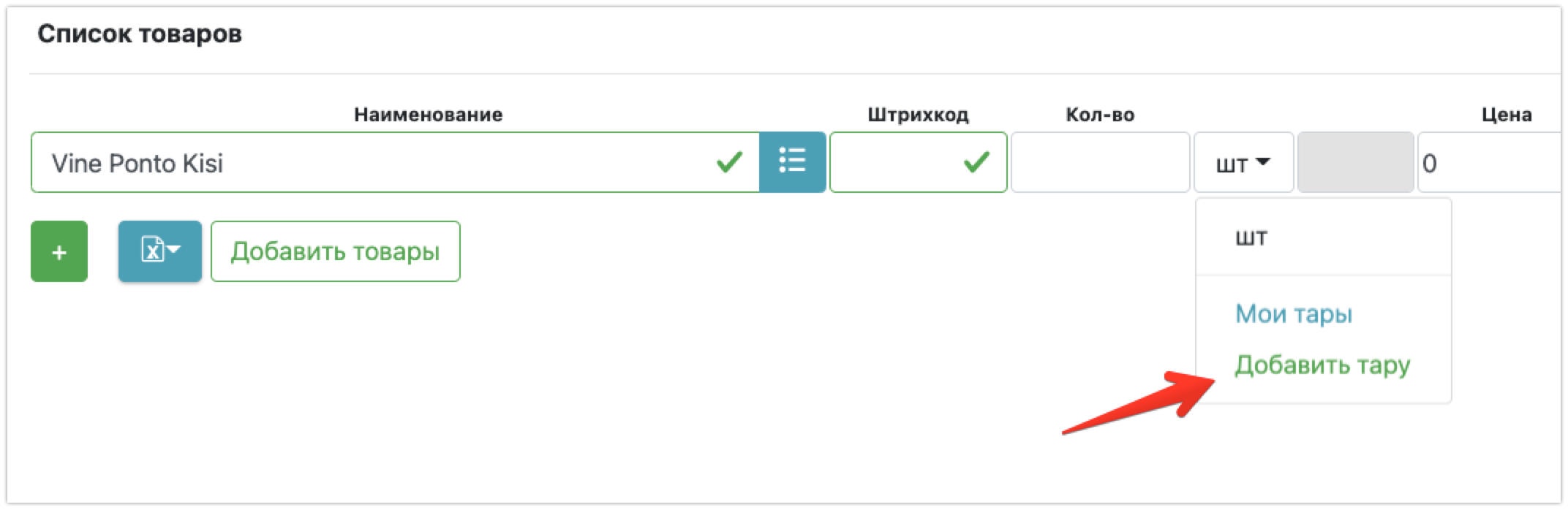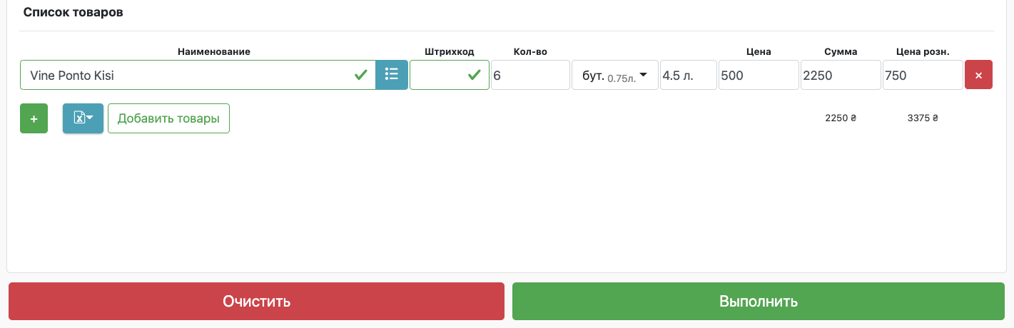 - Указываете кол-во товара штук, например сколько бутылок вина было в ящике, и SkyService автоматически пересчитает в л, мл, кг, г.