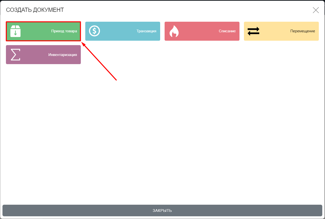 - На открывшемся окне Создать новый документ кликаем Новый приход