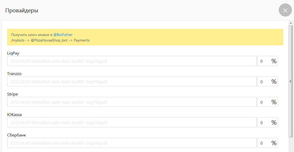 - В случае успешного подключения в @BotFather будет отображаться метод оплаты и ваш приватный ключ, скопируйте его.