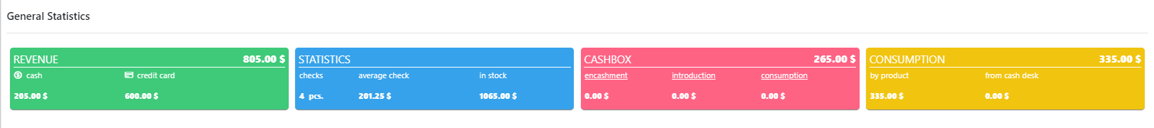 - istatistikler (çek sayısı, ortalama çek, stokta);