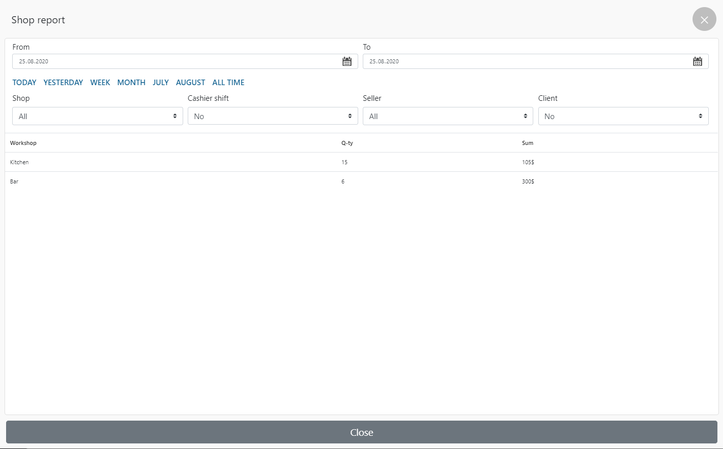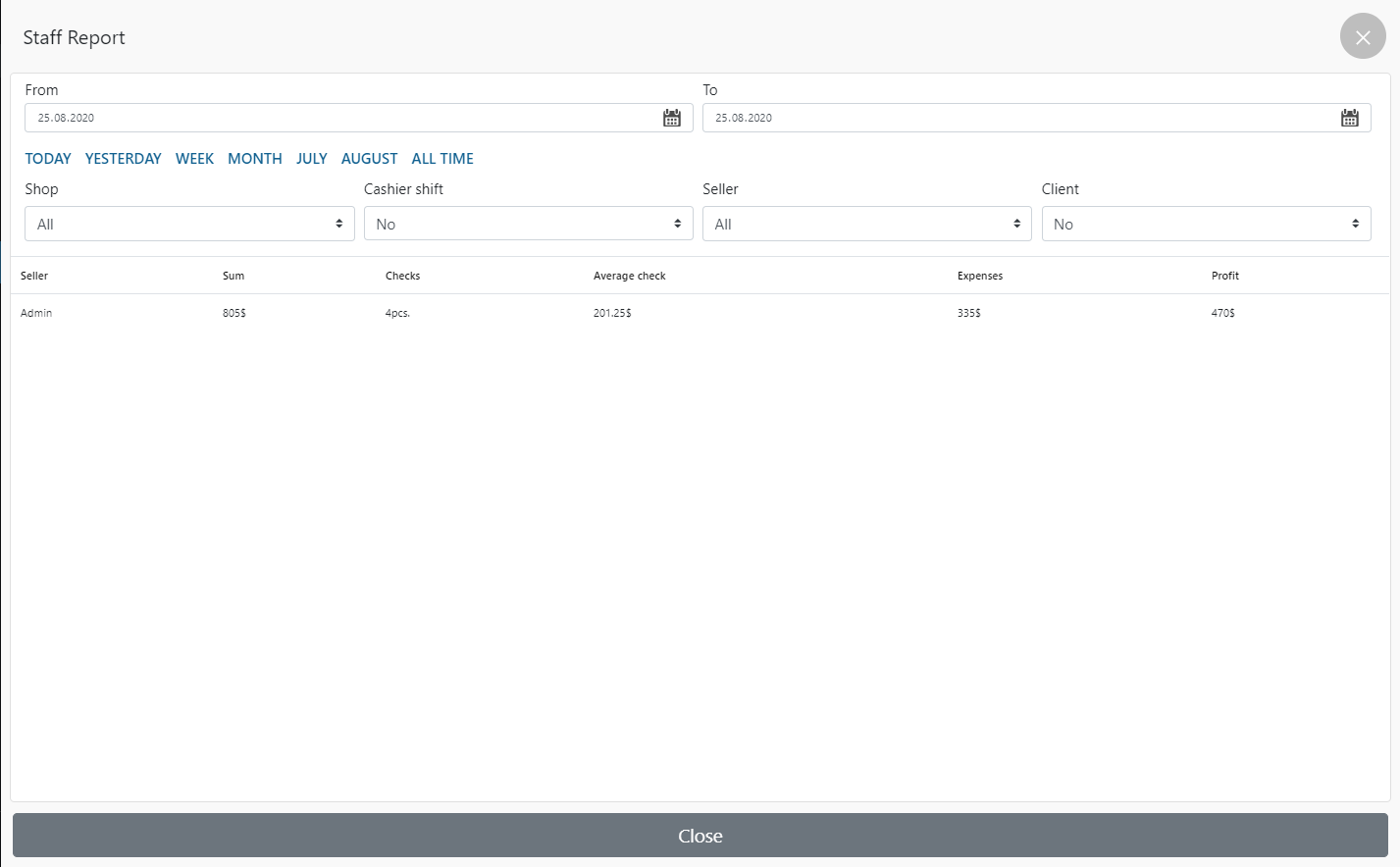 - çekler – seçilen dönem / vardiya sırasında kaydedilen çeklerin sayısı;