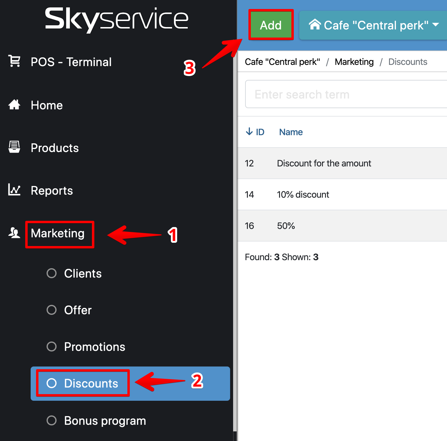 - Yönetici paneline gidiyoruz: “Pazarlama” – “İndirimler” – üstteki “Ekle” yi tıklayın