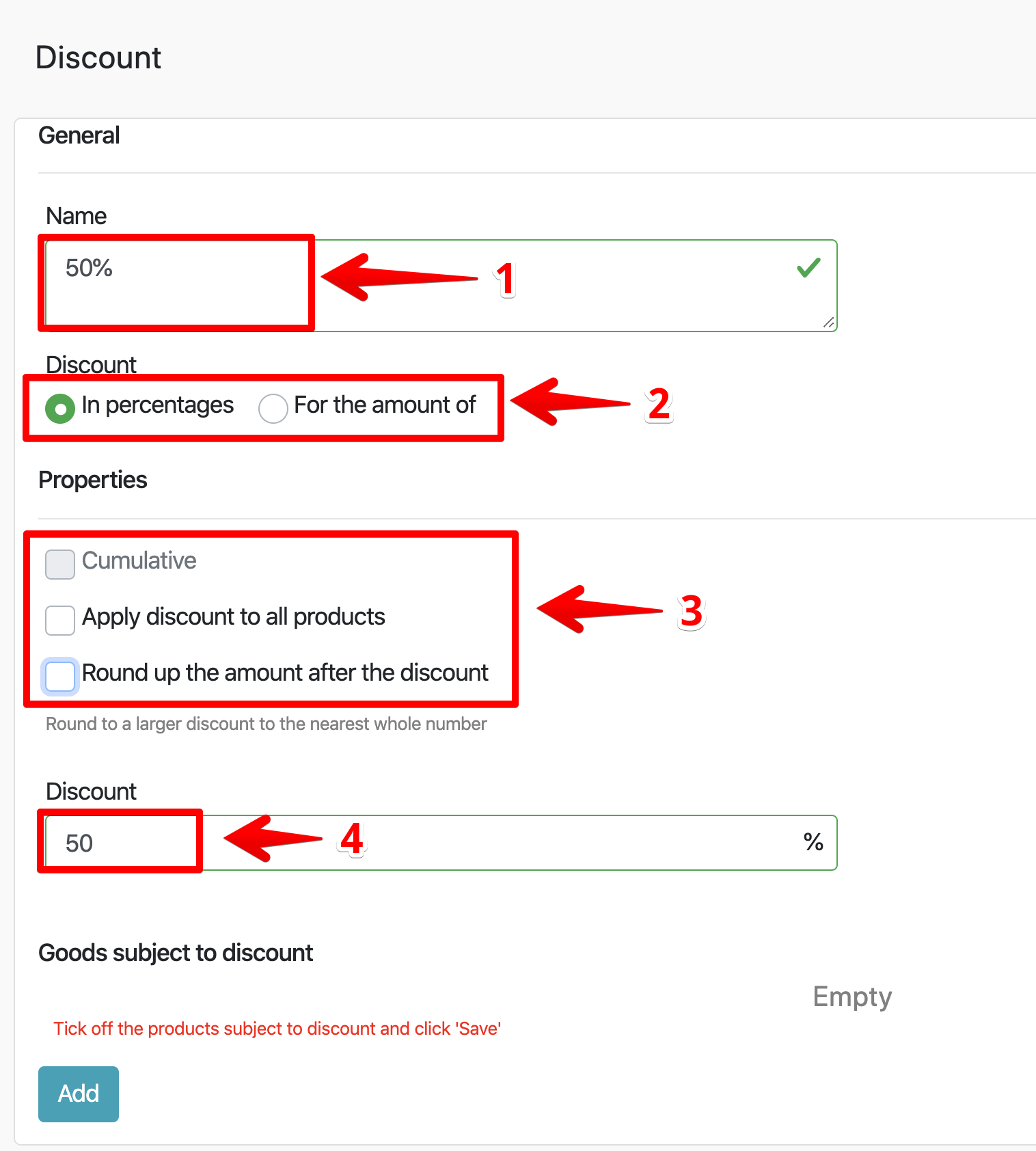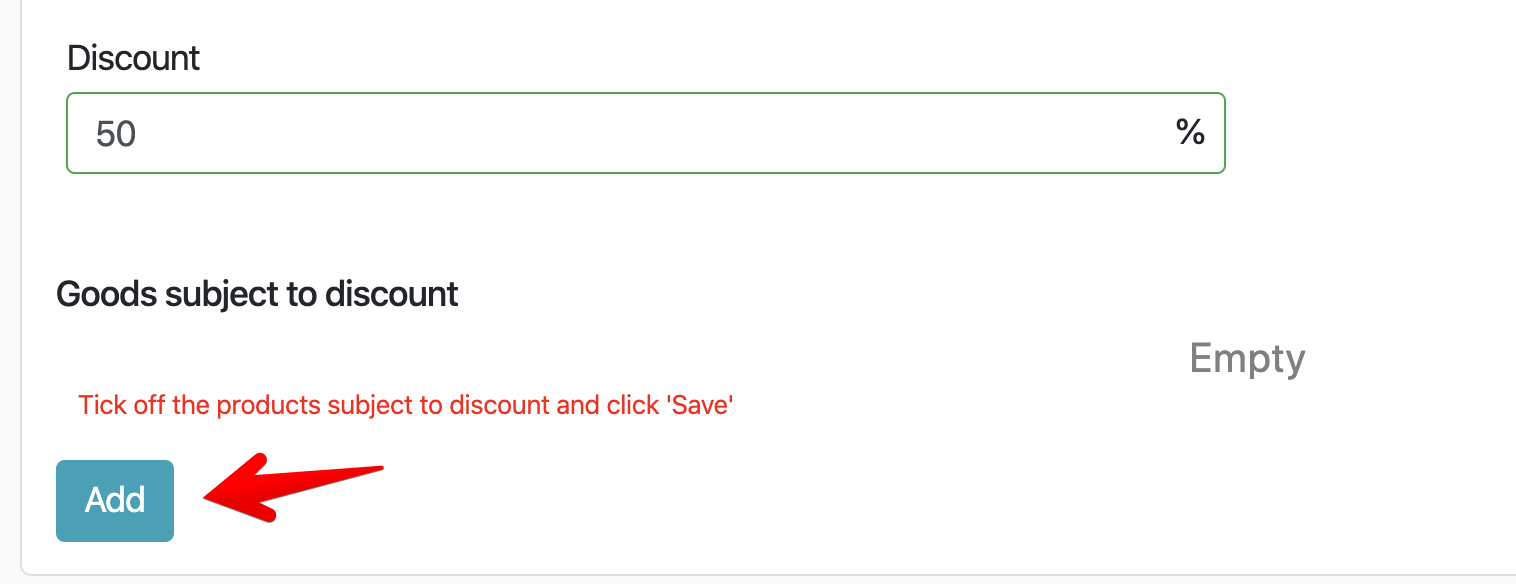 - Belirli ürünlere indirim uygulamanız gerekiyorsa, hepsine bir onay işareti koymayın, ancak “Ekle” ye tıklayın